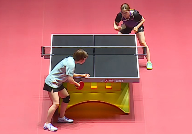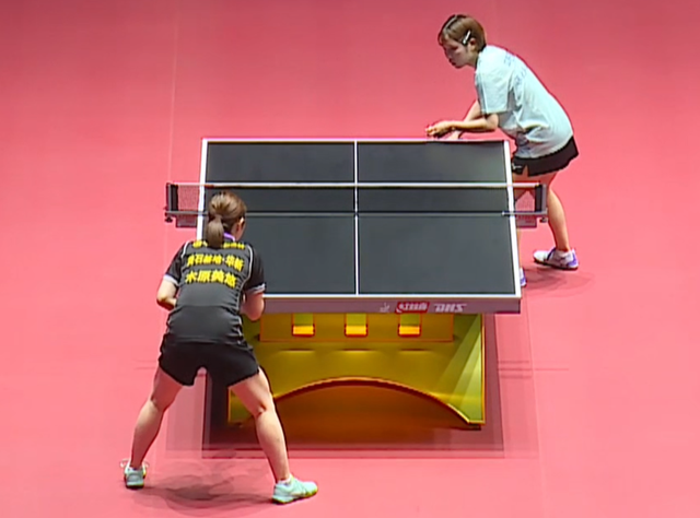 果然,比赛开始后木原美悠很快便掌握了场上的主动权,利用自己反手正胶颗粒快攻的速度压制平野美宇的反手快拉弧圈球,随即以11-8拔得头筹。第二局平野美宇依旧在场上对不上点,很快又被木原美悠再次以11-8突破,由此而陷入绝境。